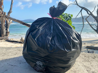Ich begann auf dem Grundstück neben dem Patatran Abfall einzusammeln und bis ich am Anse Gaulettes war, hatte ich eine Stunde später 2 50 lt Säcke voll Abfall eingesammelt! Aufräumen und Abfall Einsammeln ist Meditation... : ) Zum Glück gibt es viele Container am Strassenrand, aber halt eben nicht an den Stränden, die nur zu Fuss oder per Boot zugänglich sind.