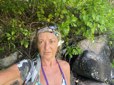 Nach einem erfrischenden Bad nahm ich die restlichen 20 Minuten zur Anse Caiman unter die Füsse. Hier war ich bisher noch nicht, ich habe den winzigen Strand bisher nur von weitem aus der Anse Fourmis beim Joggen gesehen. Und ich war geschockt, wie viel Abfall hier herumlag... ich sammelte alles zusammen und stellte es an einen sicheren Platz - jemand mit einem Boot wird es holen, Barny versicherte mir das, denn so macht er es auch mit dem Abfall auf der Anse Cocos.